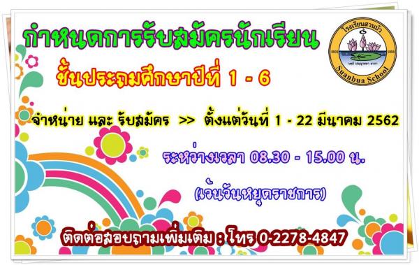 รับสมัครนักเรียนชั้นประถมศึกษา ปีการศึกษา ๒๕๖๒